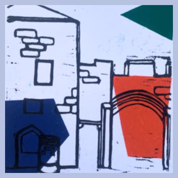 My main focus, I carve abstract designs into linoleum. I then ink and print these carvings, emphasizing line, shape repetition, and positive/negative space.