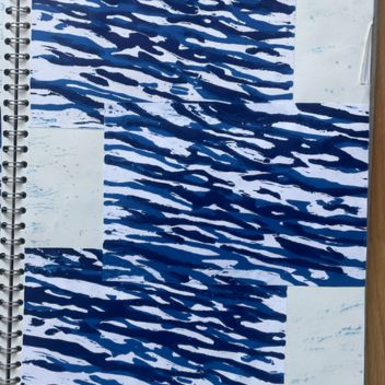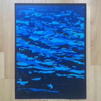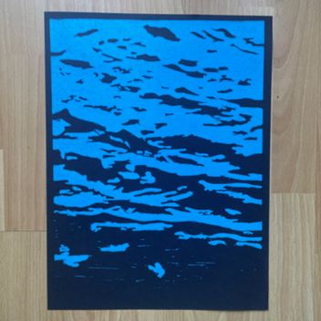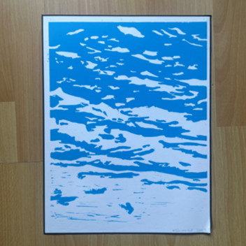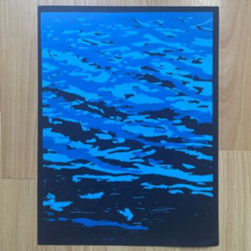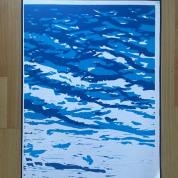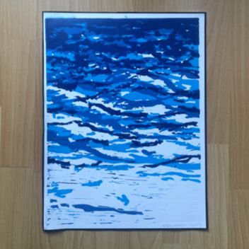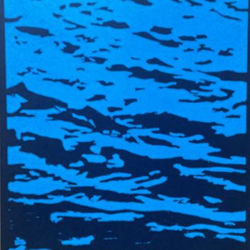 A printing technique that is inspired by water in a significant way to create unique and often unpredictable effects.  The emphasis is often on the beautiful and sometimes serendipitous patterns that emerge from the water.  I use Lino prints of the shapes made by the shadows and highlights in water.